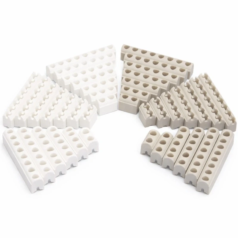 Our high-quality refractory ceramic train-type components and ceramic tiles are specifically designed for the manufacturing of ceramic band heaters, clamp heaters, and strap heaters. These components, made from materials such as steatite (talc) and alumina, ensure superior electrical insulation and exceptional thermal resistance in critical industrial processes.
