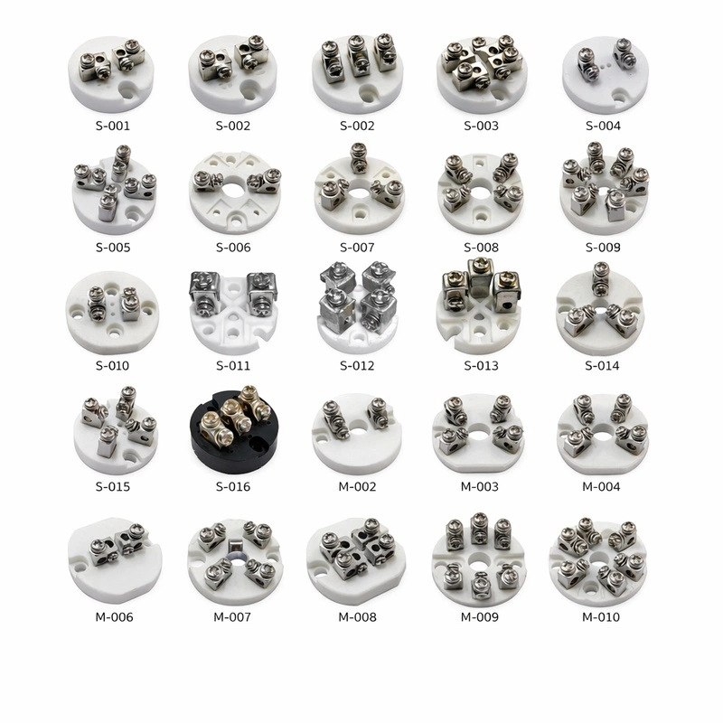 Este dispositivo se instala típicamente dentro del cabezal de conexión y actúa como el núcleo del sensor, permitiendo una transferencia de señal estable y segura. Los bloques terminales cerámicos son preferidos en la industria por su excepcional resistencia al calor extremo (hasta 1000 °C) y su alta rigidez dieléctrica, lo que evita cortocircuitos e interferencias. Por otro lado, los bloques de baquelita ofrecen una solución robusta y económica para aplicaciones de temperatura moderada, garantizando siempre una fijación mecánica firme para los conductores.