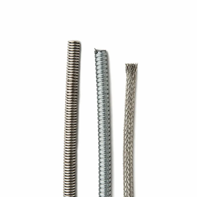 La principal diferencia radica en el equilibrio entre flexibilidad y protección mecánica. La malla metálica trenzada es extremadamente flexible, ideal para cables que deben moverse constantemente sin restringir su radio de curvatura, protegiendo principalmente contra la abrasión superficial.