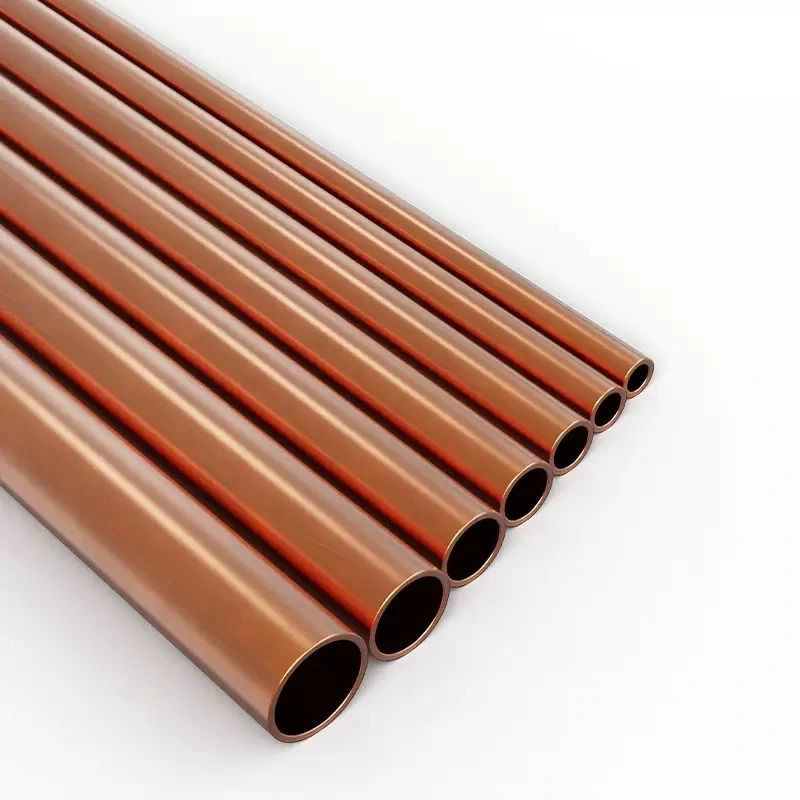 Los tubos de cobre para refrigeración y aire acondicionado son componentes esenciales en la industria HVACR (calefacción, ventilación, aire acondicionado y refrigeración), diseñados específicamente para la conducción eficiente y segura de refrigerantes, aceites y fluidos. Estos tubos de cobre sin costura son el estándar global debido a su excepcional conductividad térmica, alta resistencia a la corrosión y durabilidad superior. Son fundamentales en la construcción de intercambiadores de calor de cobre, donde facilitan la transferencia energética en evaporadores y condensadores, optimizando el rendimiento de los sistemas de climatización y refrigeración industrial. La soldadura fuerte (brazing) es el método preferido para unir estos tubos, garantizando conexiones herméticas y robustas que soportan las exigencias operativas de los equipos modernos.